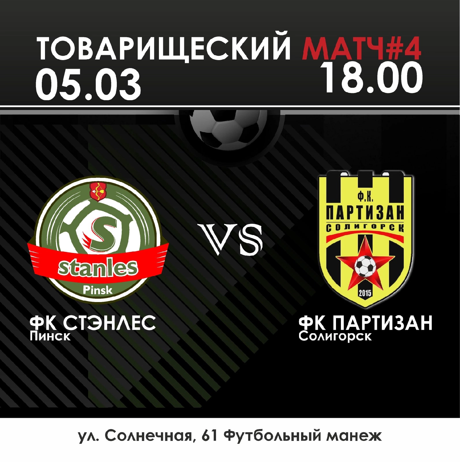 Встреча «Стэнлес» — «Партизан» пройдет в манеже Академии футбола и начнется в 18 часов.