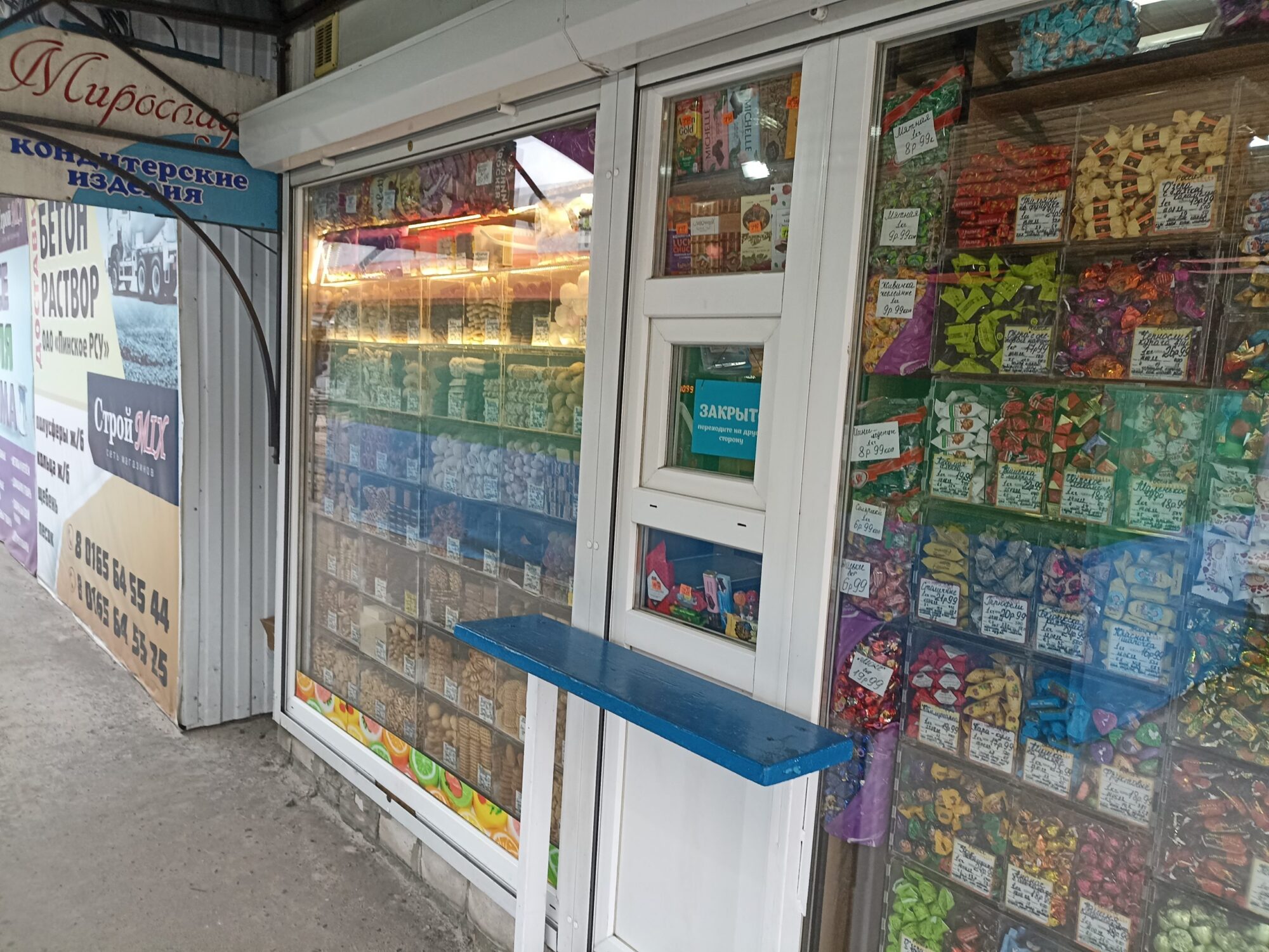 Хлеб. Проходим мимо единственной торговой точки с хлебом. Здесь выбор немного больше, чем в магазине, но многое здесь не первой свежести. К тому же в городе достаточно хлебных магазинов, в которых разнообразие свежей и вкусной выпечки. Самый известный — на улице Советская, недалеко от церкви.