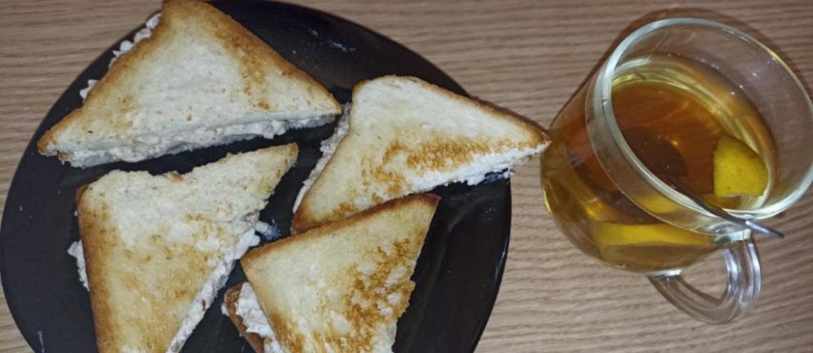 -Один ломтик намазать составом из тунца с яйцом, вторым ломтиком прижать.