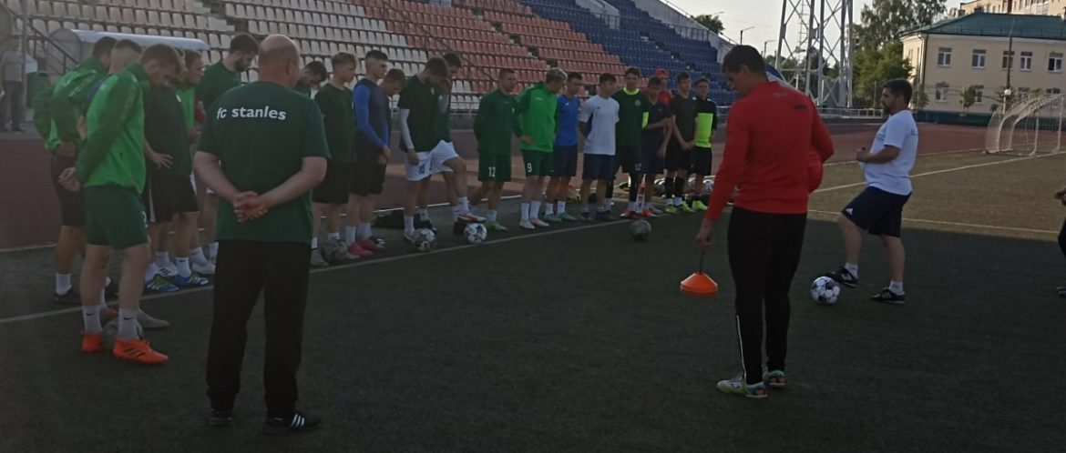 К 19 часам футболисты уже активно готовятся к тренировке на стадионе «Волна». Работает клуб сейчас здесь, чтобы привыкнуть к полю перед игрой. А вообще тренируется и играет «Стэнлес» на полях академии футбола.