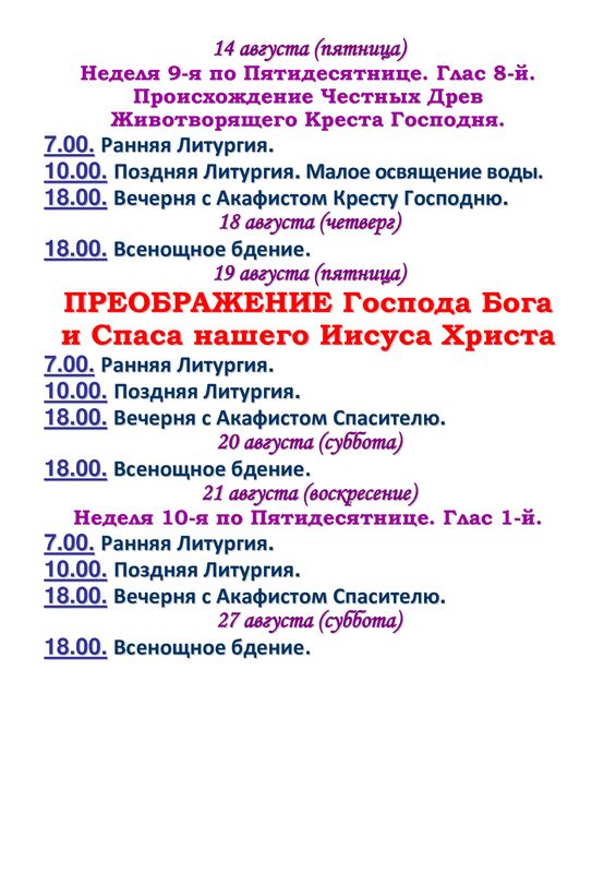 Самыми важными датами в церковном календаре в августе считаются:
