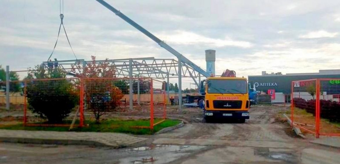 Работу по возведению торгового центра и приведению в порядок территории вокруг него будет выполнять Пинский РСУ. Чем они незамедлительно и занялись. На территории бывшего общежития возвели металлический каркас будущего здания.