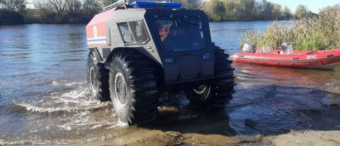 Снегоболотоход «Шерп» (своё название вездеход получил в честь непальских горных проводников, сопровождающих альпинистов на труднодоступных маршрутах в Гималаях, известных своей выносливостью в горах — прим.) поступил в распоряжение спасателей в середине октября. Он на шинах низкого давления, в результате чего может передвигаться по любому типу грунта, в том числе болотистой местности.