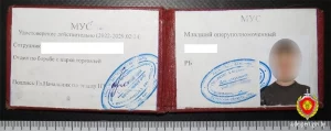 Подросток шестнадцати лет попался на своём подозрительном поведении. Сотрудники пинского патруля решили проверить юношу. При себе парень имел документ, выданный на своё имя в должности сотрудника «отдела по борьбе с наркоторговлей». Была указана и должность — младший оперуполномоченный.