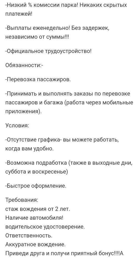 В качестве подработки предлагают смены по 4-6 часов, по выходным или вечерам. Логично, что главное из требований — наличие водительского удостоверения. Только вот работать зовут на личном автомобиле.