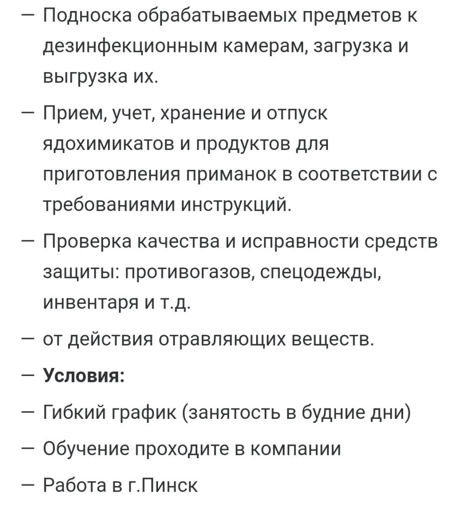 ООО «Центр дезинсекции Экосепт» также предлагает подработку. В качестве дезинфектора сменами по 4-6 часов.