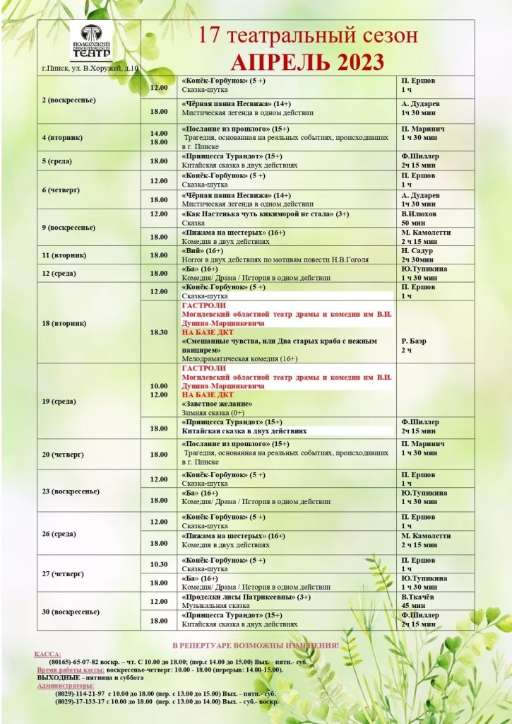 Уже известна и театральная программа Полесского драмтеатра на апрель.