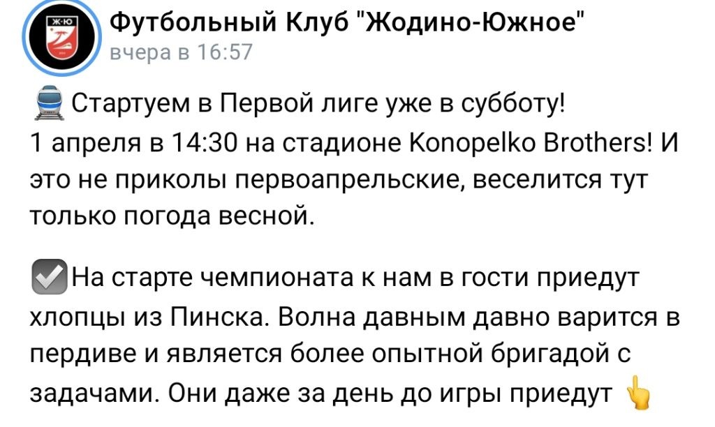 «Жодино-Южное» достаточно креативно ведёт соцсети. Вот например отрывок их превью к игре с «Волной»: