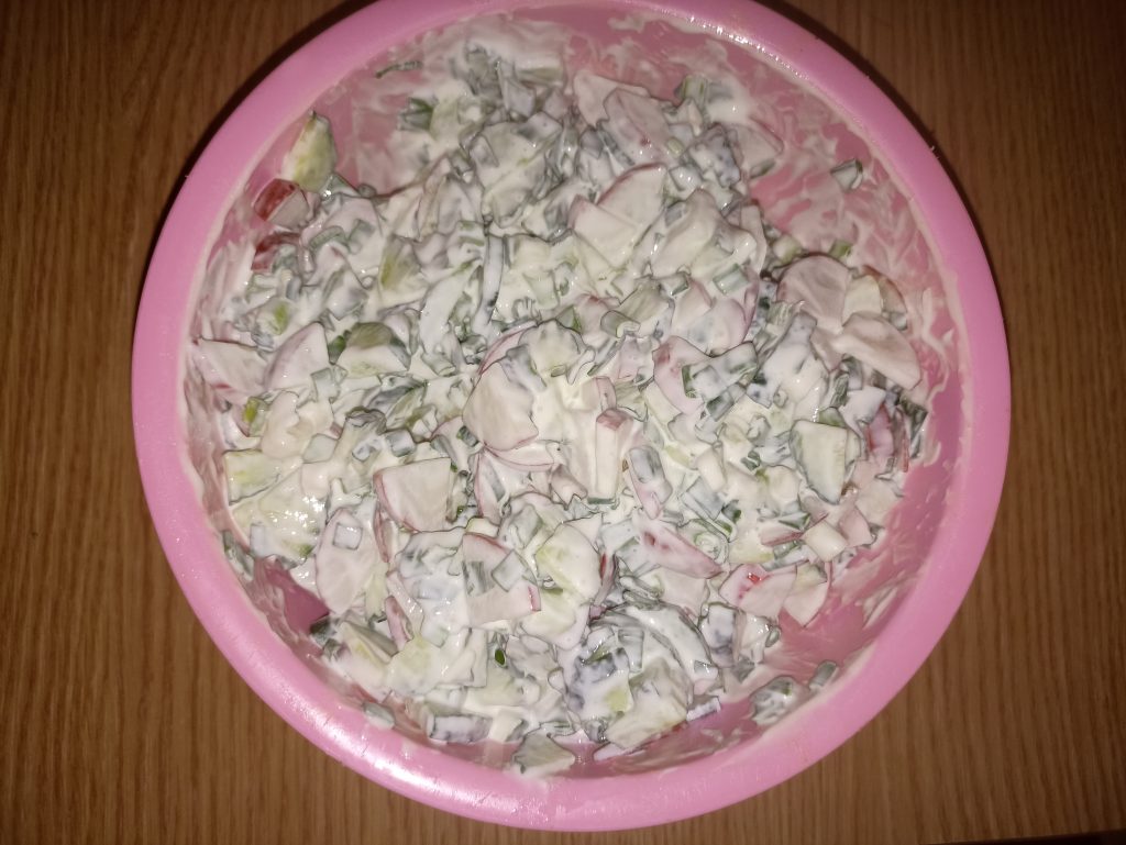 Итого: на летний салат на 4 персоны мы потратили 10,69 рублей.