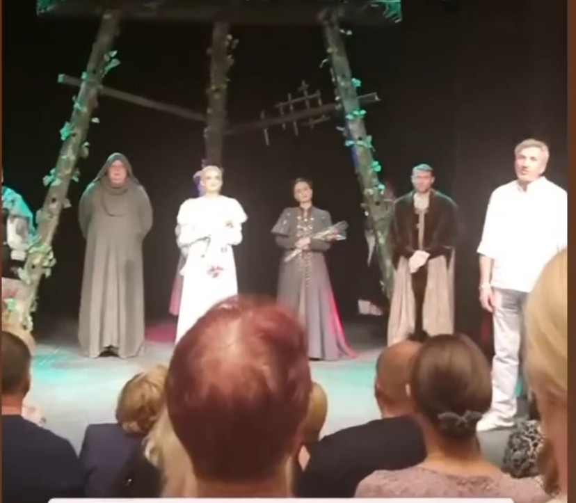 А после спектакля на сцене появился директор, художественный руководитель и режиссер театра в одном лице Александр Николаевич Лукашенко. Стало известно, что два актёра, Андрей Дмитриченко и Павел Дракин, завершают свою длительную карьеру в Полесском драмтеатре. Первый работал здесь с 2006 года, а второй — с 2013 года.