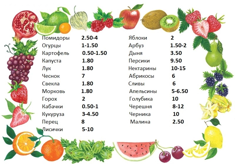 В изобилии помидоры. Их можно выбрать под любой бюджет. От 2,50 до 4 рублей. Причем самые дешёвые не есть самые плохие. Просто всё зависит от размеров.
