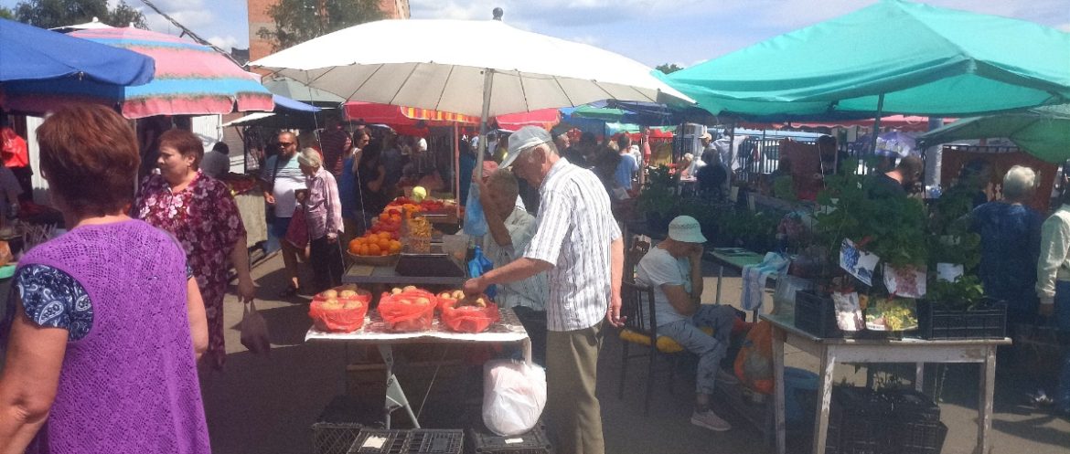 А вот огурцов становится всё меньше. Продавец в одном из торговых рядов предлагает взять хоть за рубль, главное побольше.