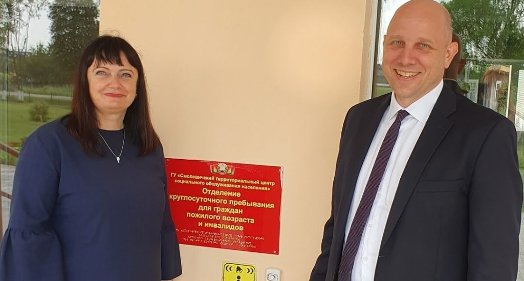 В конце июля Кристиан Зипманн, Первый секретарь Посольства, посетил Смолевичи и обсудил с Ольгой Вашковской, директором территориального центра, и его сотрудниками их важную работу, а также использование нового оборудования, профинансированного Посольством.