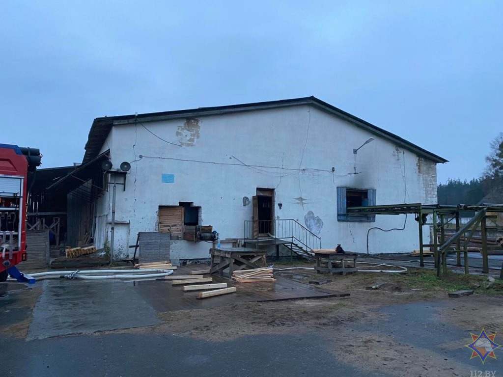 Подразделения пожарных оперативно прибыли к месту вызова в агрогородке Каменюки Каменецкого района. Там они выяснили, что имеется плотное задымление в одноэтажном цехе распиловки древесины лесозавода.