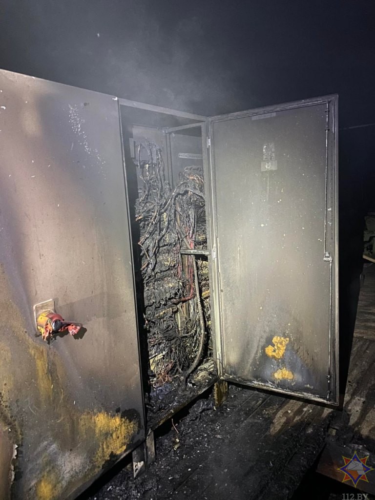 Пожар ликвидировали, а пострадавших нет. Предварительно известно, что огнем уничтожены деревянный пол, 3 электрических щита управления.
