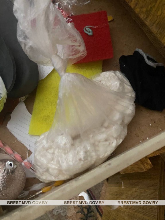 По месту жительства задержанного и в тайниках обнаружено и изъято более 1 килограмма особо опасного психотропного вещества “4-СМС”. Сообщается, то житель Пинска успел поработать оптовым курьером наркошопа около месяца.