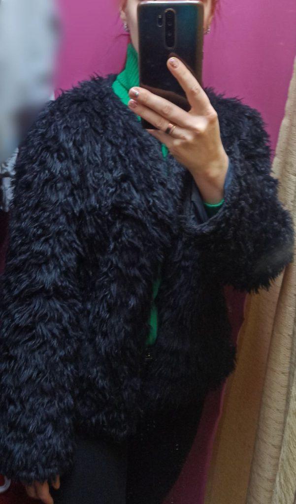 Чтобы закрепить результат своего похода, повернула в сторону верхней одежды. Нашла по своему вкусу только шубку из искусственного меха бренда ZARA. Однако была она не в идеальном состоянии. Если кто-то может и умеет реанимировать вещи, то обновить эту шубку будет пустяковым делом. Всего-то расчесать ворс.