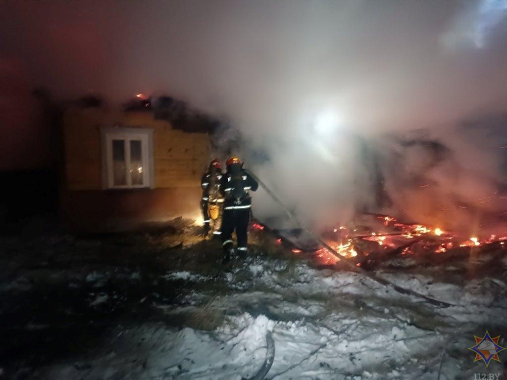 А поздним вечером 5 декабря спасателям рассказали о пожаре в агрогородке Лесная Барановичского района. Работники МЧС прибыли на улицу Акимова и выяснили, что двухквартирный нежилой дом полностью охвачен огнем.