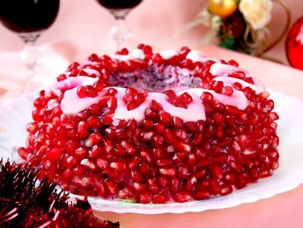 - Всю поверхность салата покрыть зернами граната.