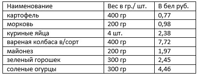Итого, салат «Оливье» для четырёх человек в Польше можно приготовить в эквиваленте за 20,73 бел рублей.