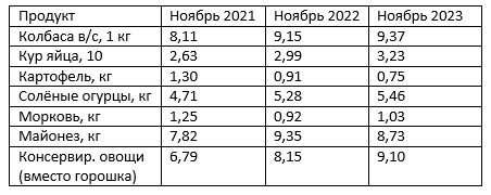 «Индекс оливье» в Беларуси 2021-2023