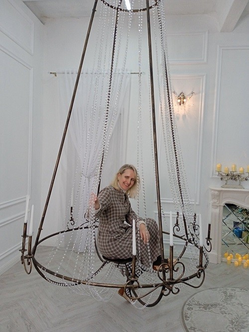 На сегодняшний день в фотостудии уже работает один зал с разными локациями. Здесь много уютных уголков. Например, арт-объект в виде хрустальной люстры трехметровой высоты, внутрь которой можно становиться во весь рост. На оформление люстры было израсходовано 220 метров хрустальных подвесок. А воплотили в жизнь эту идею Светланы кузнецы из Минска.
