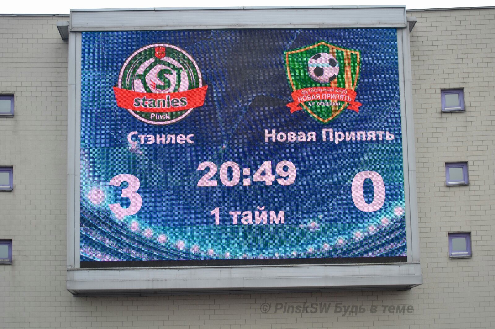 Пинские болельщики в соцсетях прочили родной команде разгромную победу, и лишь немногие ставили на разницу в счете менее 6 мячей в пользу «Стэнлеса». Но старт игры подтвердил, что «Новая Припять» готова бороться с лидером второй лиги. В этом немало помогла и серьёзная поддержка ольшанских болельщиков на стадионе «Волна».