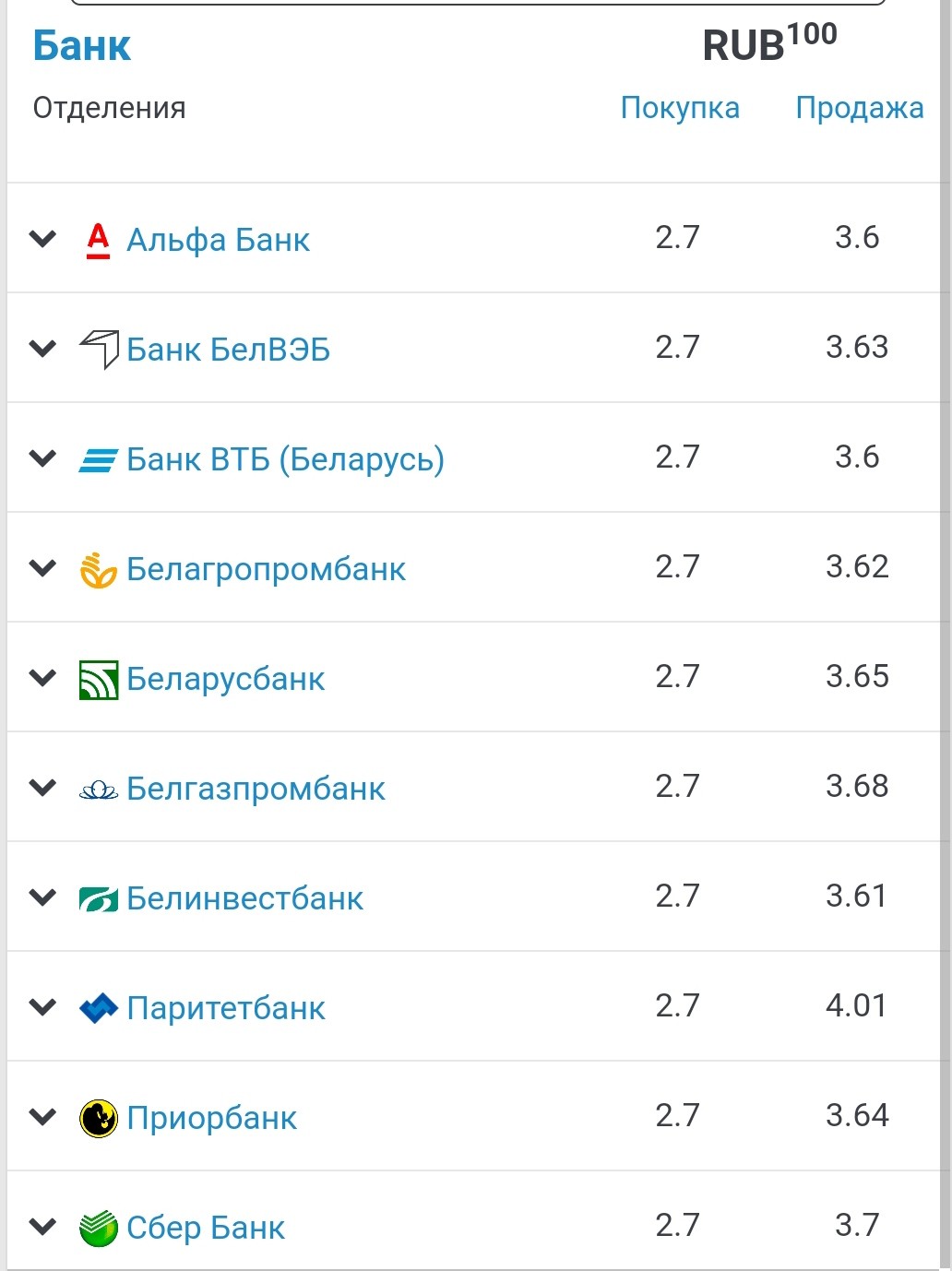 А вот 100 российских рубля теперь стоит 3,5638 белорусского рубля. Россия подорожала на 0,06%, или 0,0021 рубля.