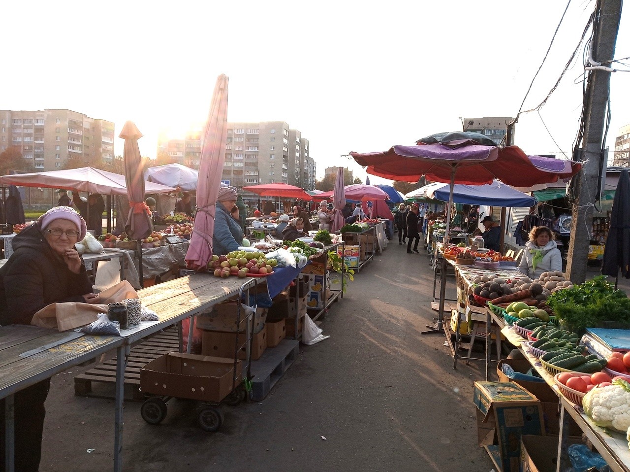 Овощей на рынке для конца октября предостаточно. Сезонные овощи, такие как помидоры, перец, огурцы, морковь, свекла, картофель, предлагают в достатке, есть из чего выбирать и с кем сторговаться. Но уже не найдешь на прилавках редиса, кабачков, да и баклажаны практически не попадаются.