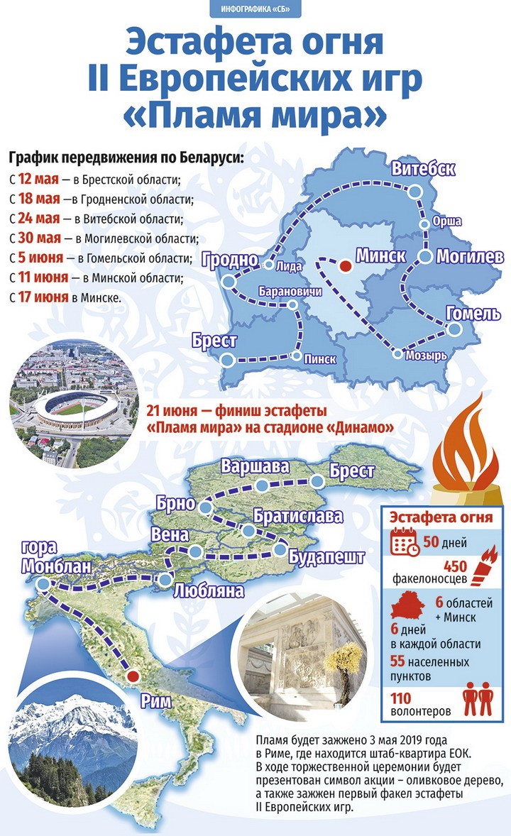 Помимо Бреста она пройдет еще по пяти городам региона: огонь II Европейских игр встретят также в Барановичах, Пинске, Микашевичах, Коссово и Каменце, после чего 18 мая передадут в Гродненскую область.