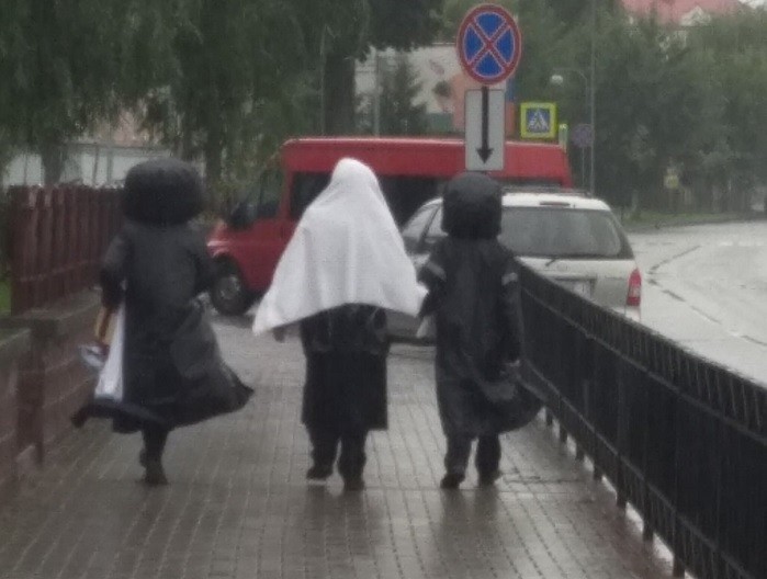 Несмотря на дождливые сентябрьские дни они группами ходят по городу удивляя жителей своей внешностью.