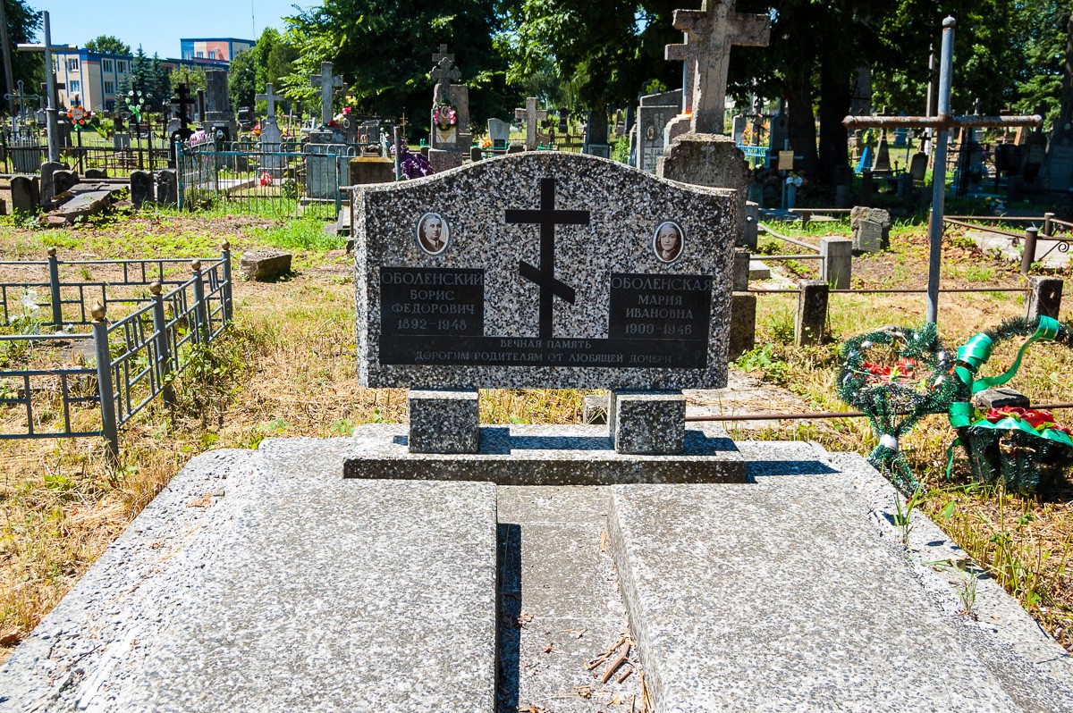Уникальна и история князя Бориса Оболенского. Его захоронение (совместное с супругой) также находится на пинском кладбище. Родился Борис Оболенский недалеко от Варшавы. Окончил Варшавский Суворовский кадетский корпус, а позже и Александровское военное училище в Москве. Герой Первой мировой войны.