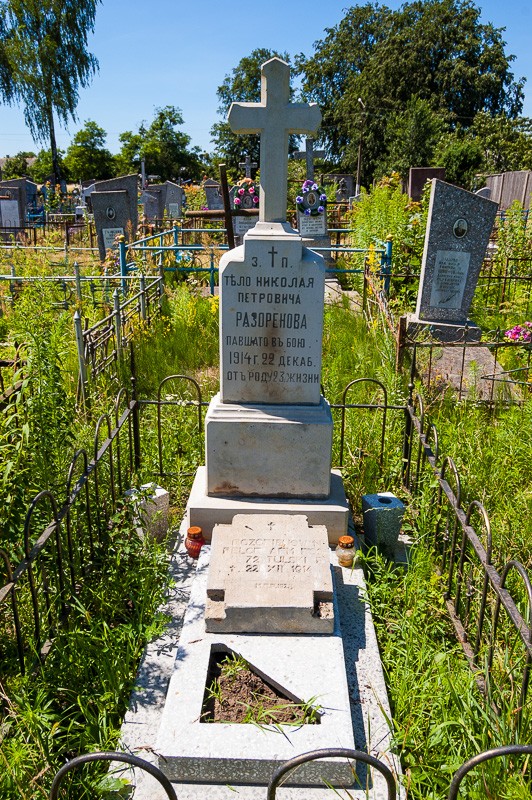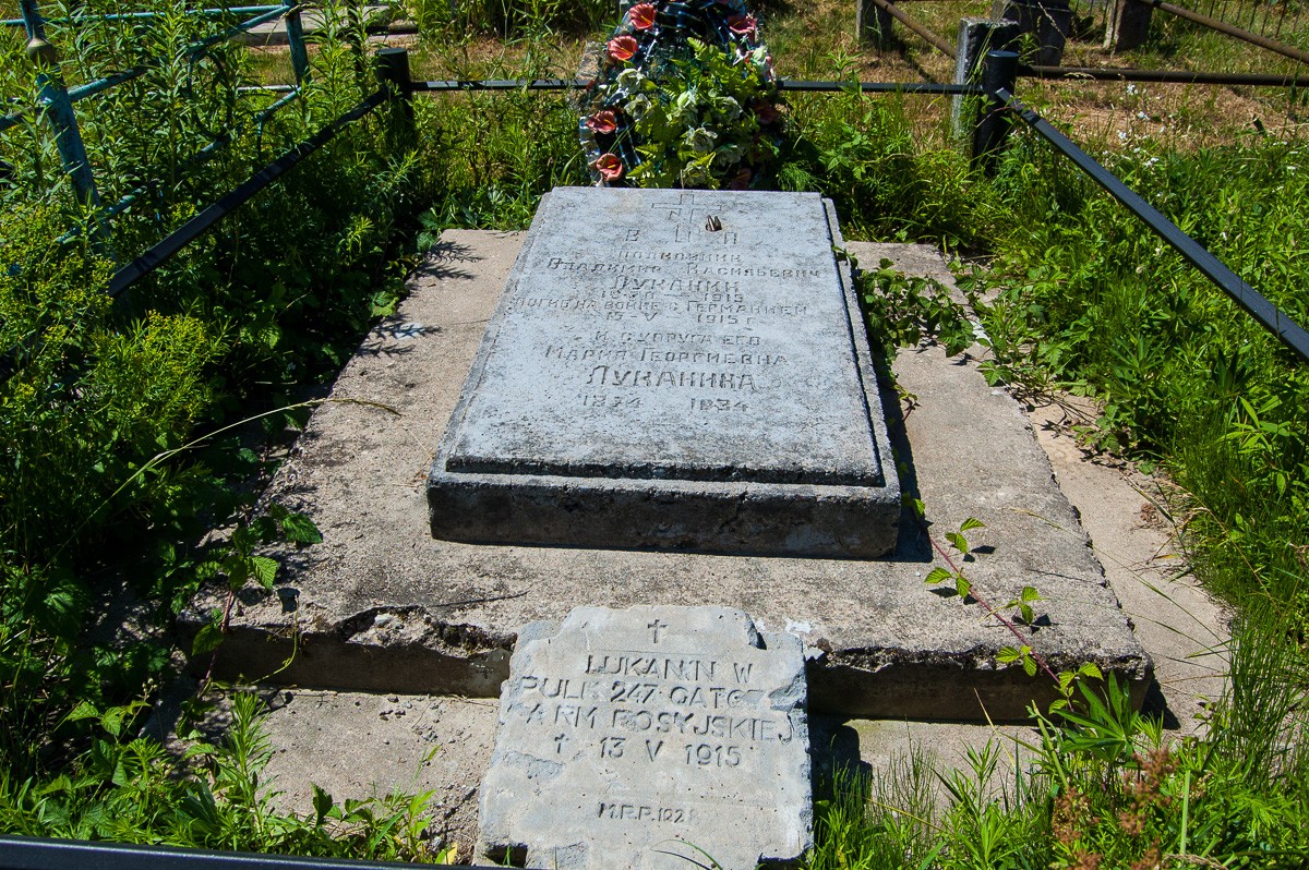 Оба солдата пали в бою. Рядовому Разоренову было всего 23 года. Вместе с Владимиром Луканиным захоронена и его жена Мария Луканина. Памятники на их могилах были дорогими, что и спасло эти захоронения от забвения в 70-ые годы.