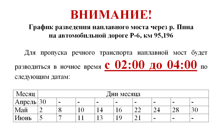 27 апреля он впервые в этом сезоне отправится из Бреста в Мозырь через Пинск. В столицу Полесья «Белая Русь» прибудет 30 апреля. Для прохода теплохода по реке наплавной мост разведут, а движение автотранспорта приостановят с 2 до 4 часов ночи. Речниками составлен предварительный график движения круизного теплохода «Белая Русь» и связанного с этим разведения наплавного моста в Пинске.