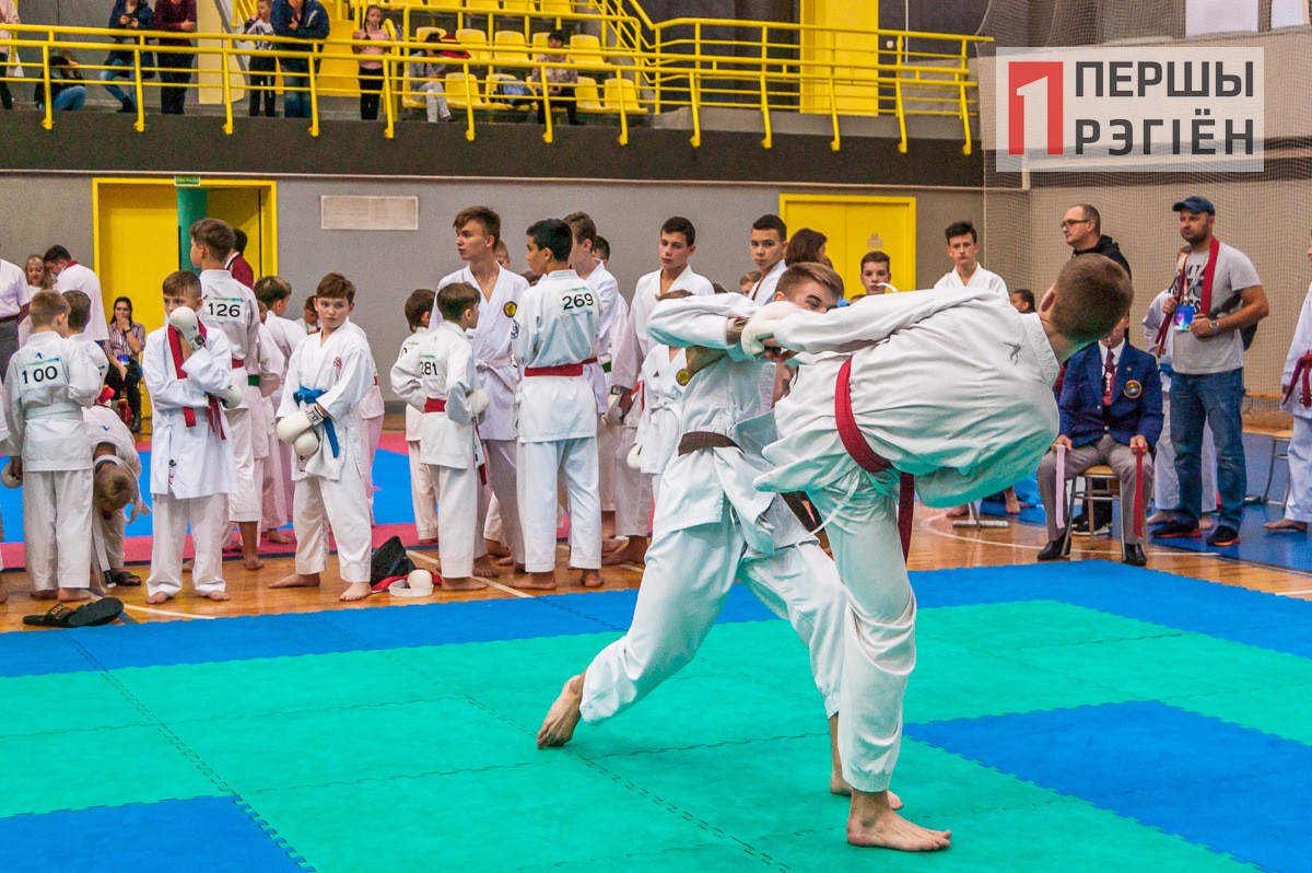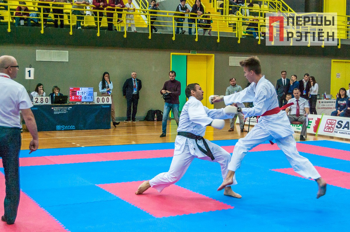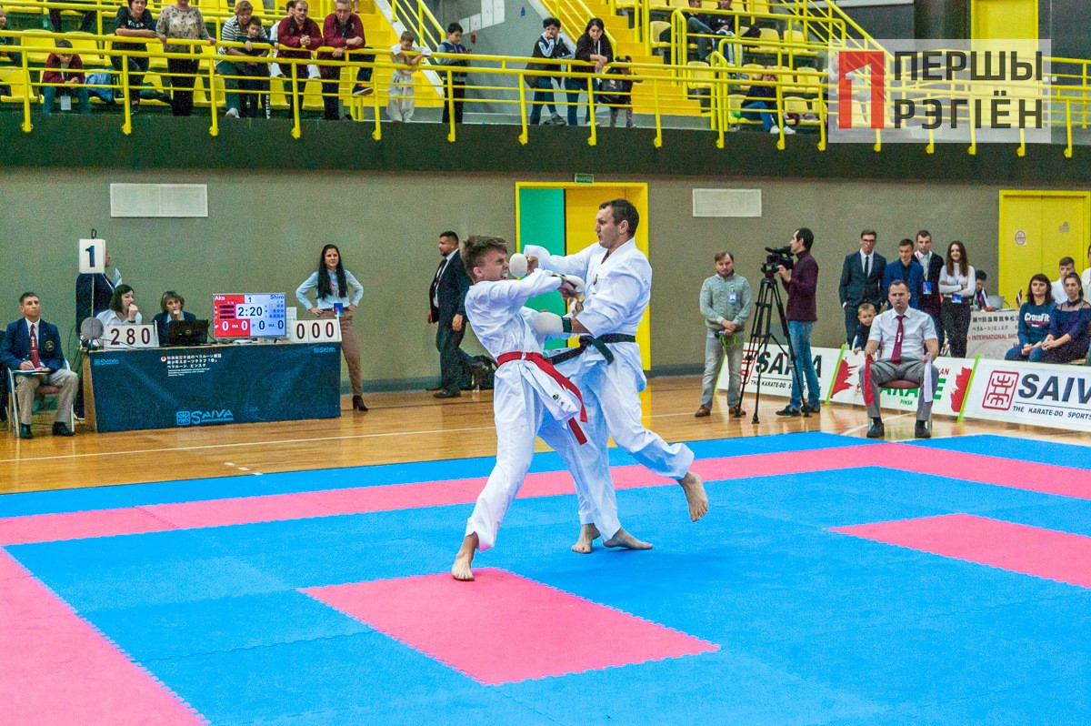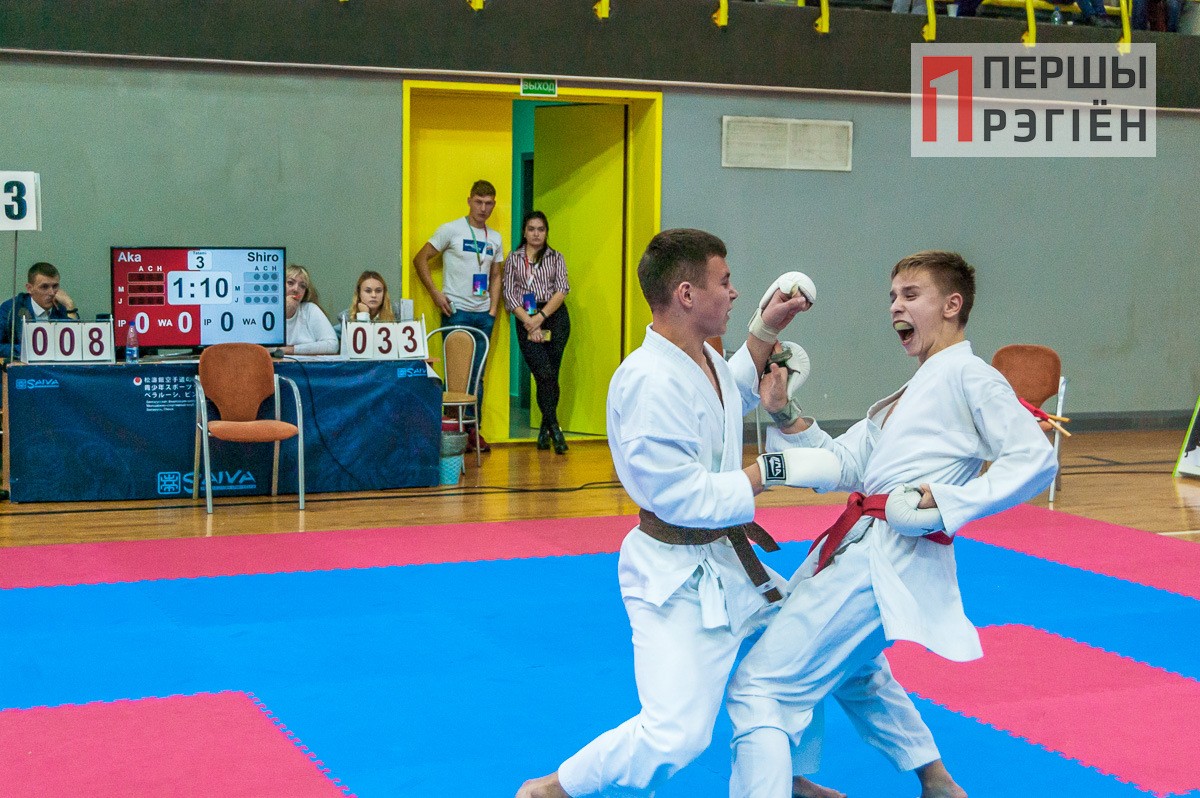 Здесь «заруба» случилась между взрослыми спортсменами из Пинска, представляющими клуб «Сайва-ПолесГу», и каратистами из российского Брянска. Накал был такой, что спортсмены с трудом сдерживали себя в рамках установленных правил.