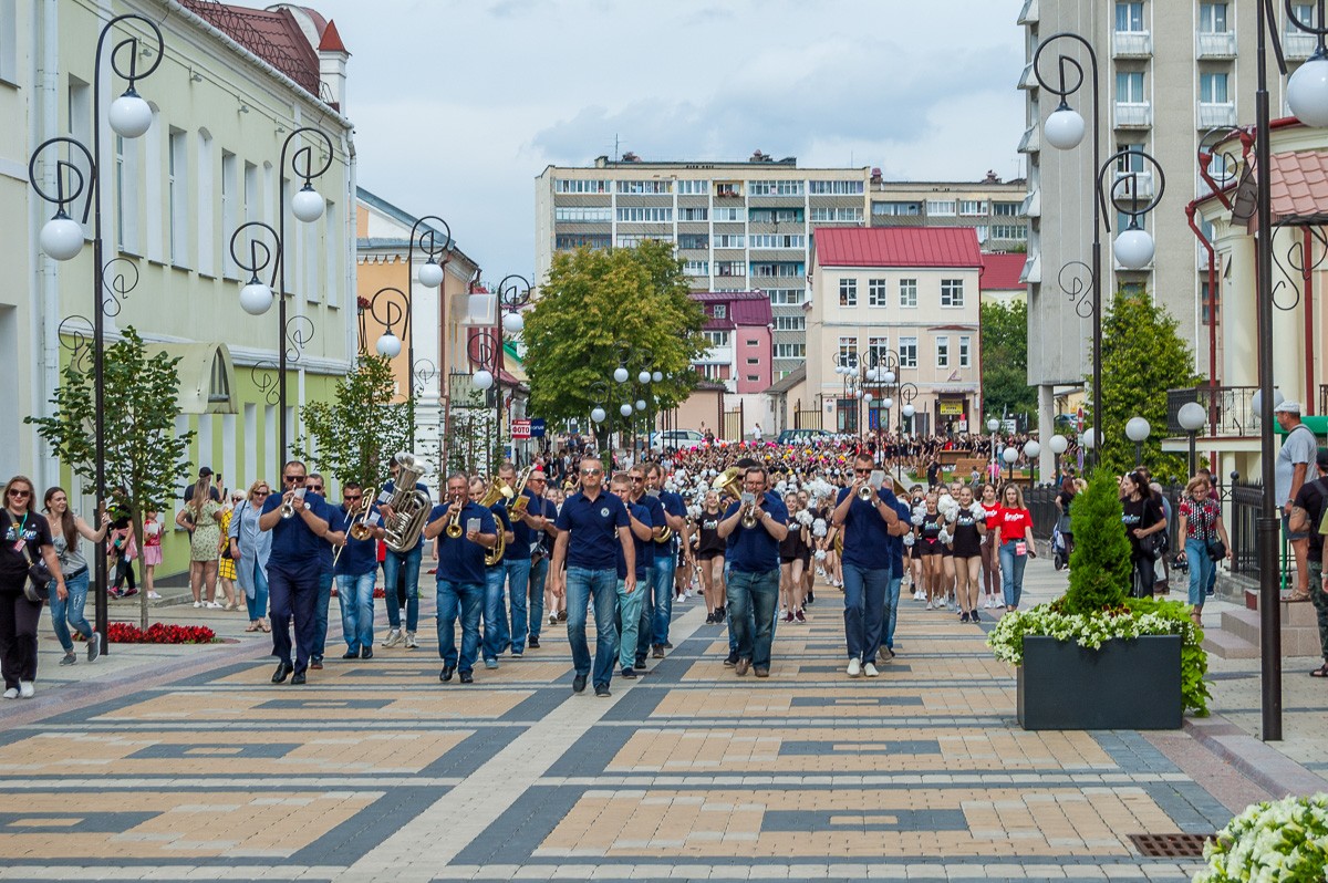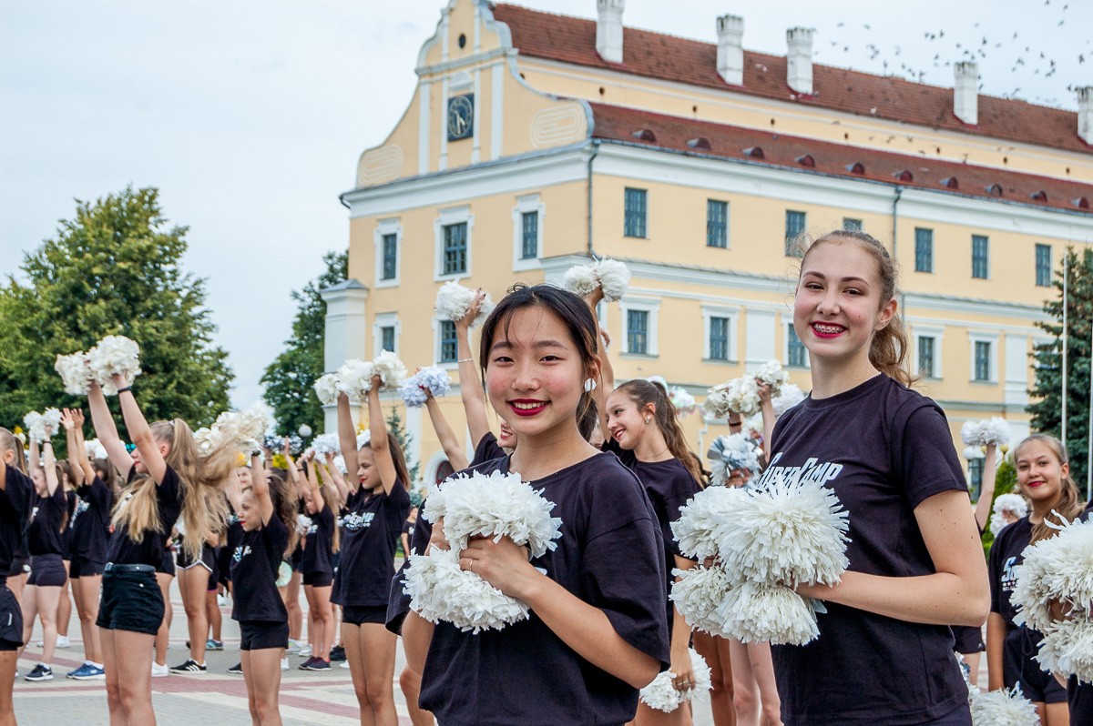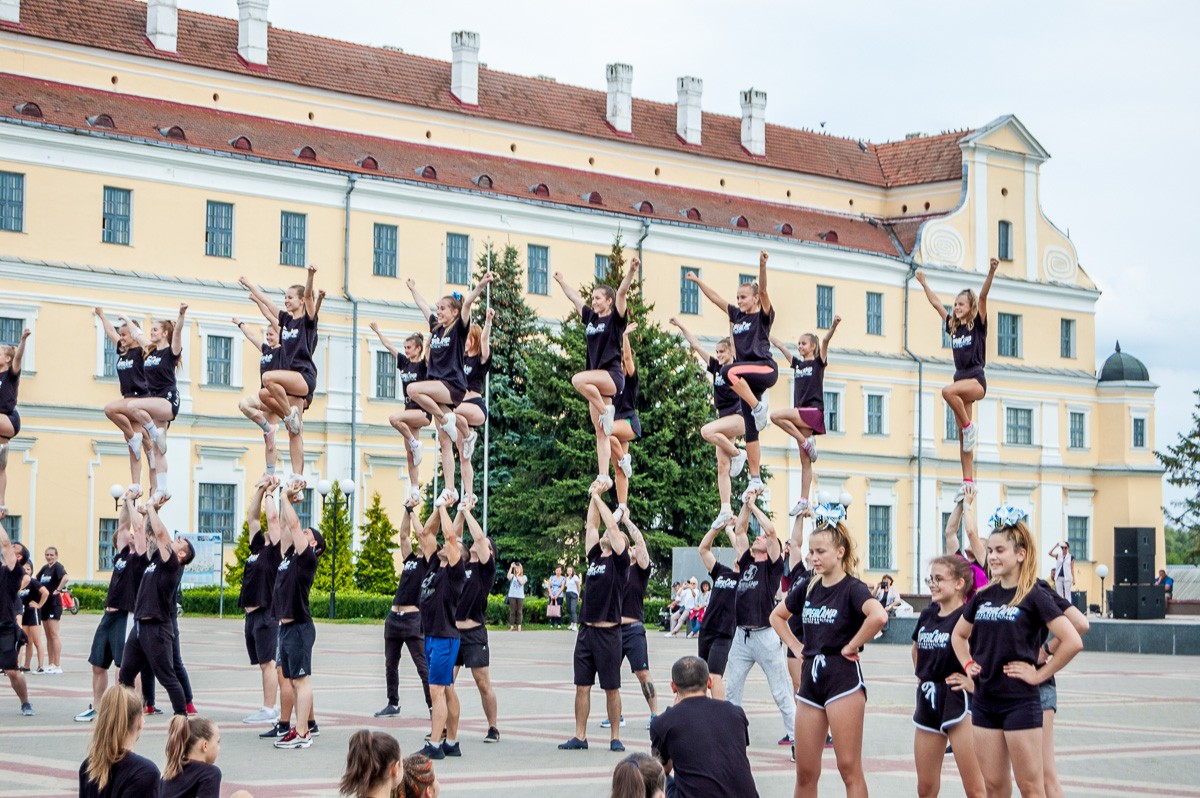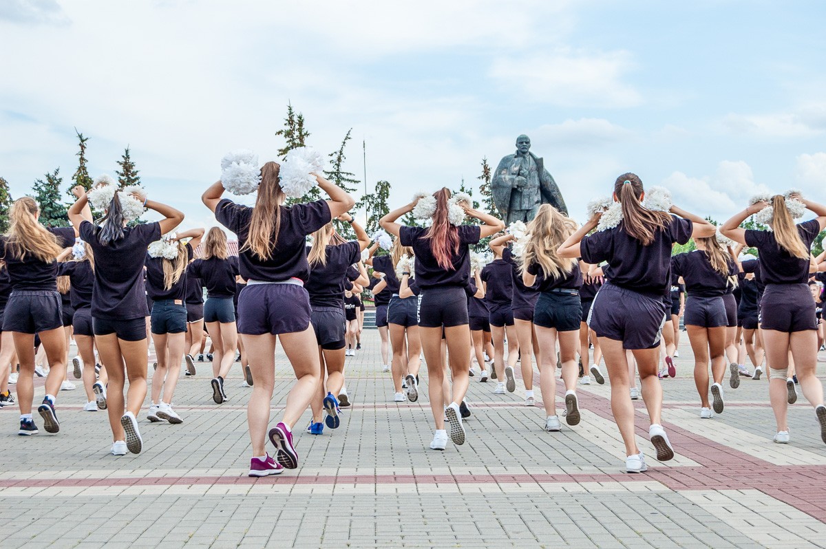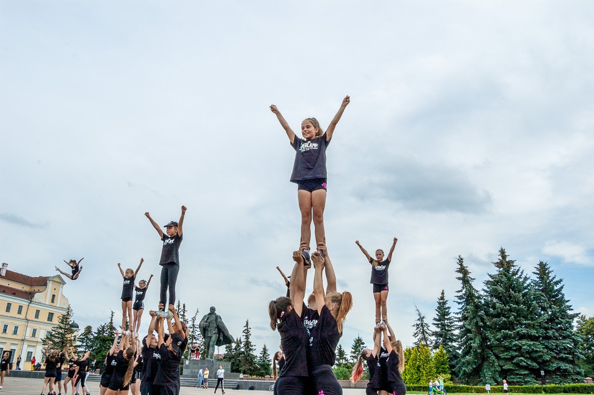 Выстроившись в длинную колонну, чирлидеры под звуки Пинского городского оркестра духовой и эстрадной музыки маршем прошли по главной улице города до площади Ленина. Там началось самое интересное. Кроме танцев, были невероятные трюки с поддержкой, которые показывали чирлидеры.