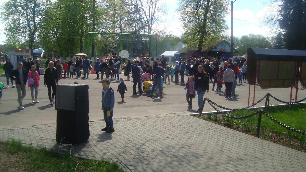 До праздничного концерта пинчане заполонили аттракционы парка. Во всех трех кассах очереди довольно приличные. Рядом же рисуют аквагрим и развлекают детей танцами и конкурсами. Много палаток с едой, где каждый желающих может отведать шашлык. Песни на военную тематику и портреты ветеранов есть практически на каждом углу. Небольшая фотозона с атрибутами военного времени также расположена вблизи сцены парка.