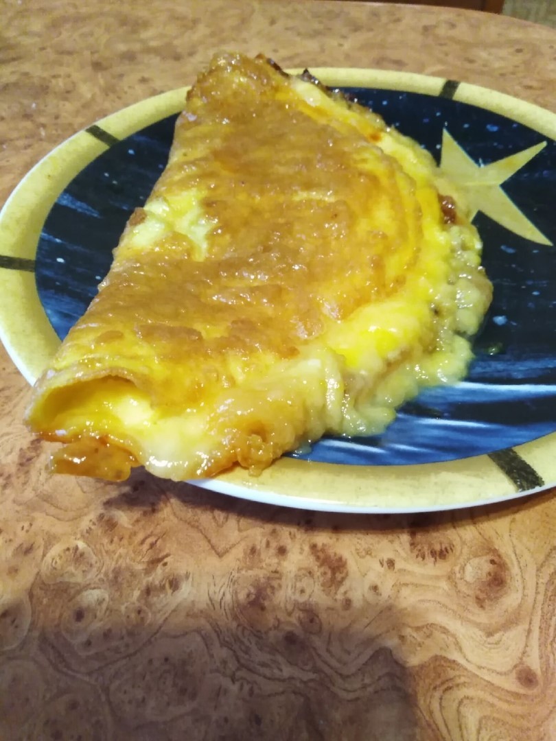 — складываем шпателем часть омлета без начинки на другую половинку и на малом огне готовим до приготовления.