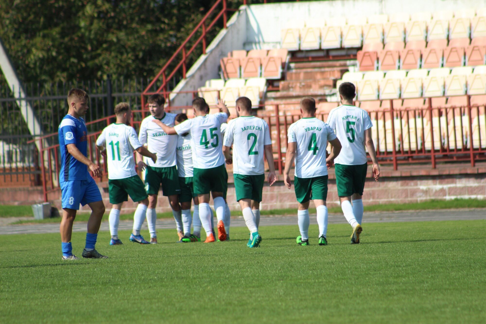 А к концу первого тайма «Стэнлес» вышел вперёд. Затяжная атака пинчан, прострел с левого фланга, Хомицевич переправляет мяч в нижний угол — 1:2. Ещё раз «Стэнлес» словил хозяев на контратаке, удар с центра штрафной — вратарь вытащил мяч из нижнего угла.