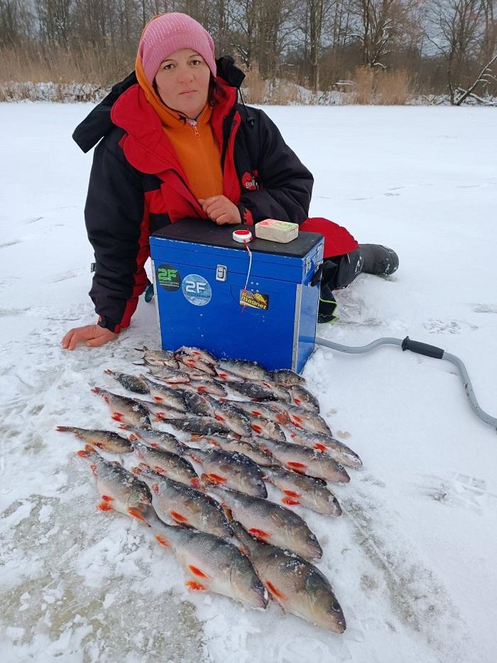 Лунинецкая рыбачка Кристина Ивашкевич тоже наловила окуня 11 декабря.