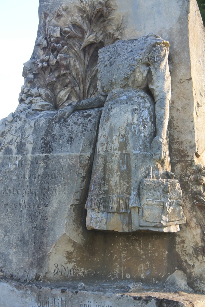 При проведении масштабных работ по благоустройству некрополя представители неравнодушной общественности Пинска в 2007-2008 года собрали части поврежденной скульптуры. Также они обнаружили и голову скульптуры.