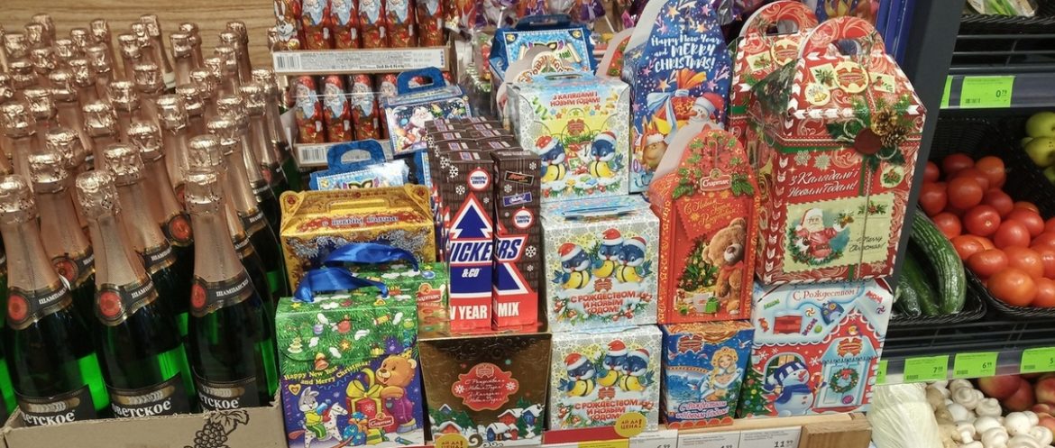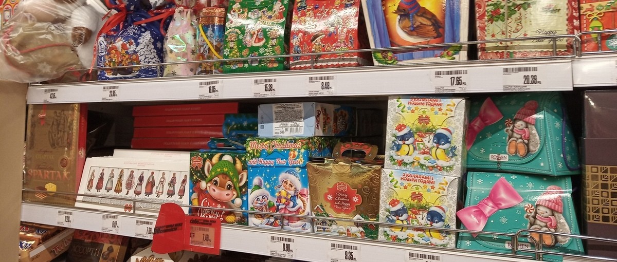Мандарины, икру и горошек выходные сейчас покупать в магазине «АЛМИ». Зато в «АЛМИ» шампанское дороже на 20 копеек, чем в магазинах «Санта». И наборы конфет в «АЛМИ» значительно дороже, чем в других магазинах. Поэтому за шампанским и за наборами конфет следует бежать в магазины «Санта».