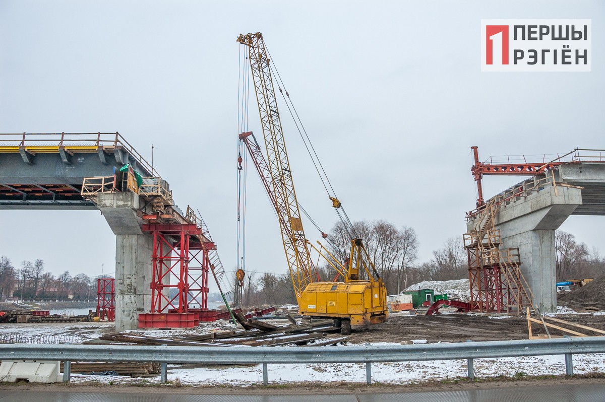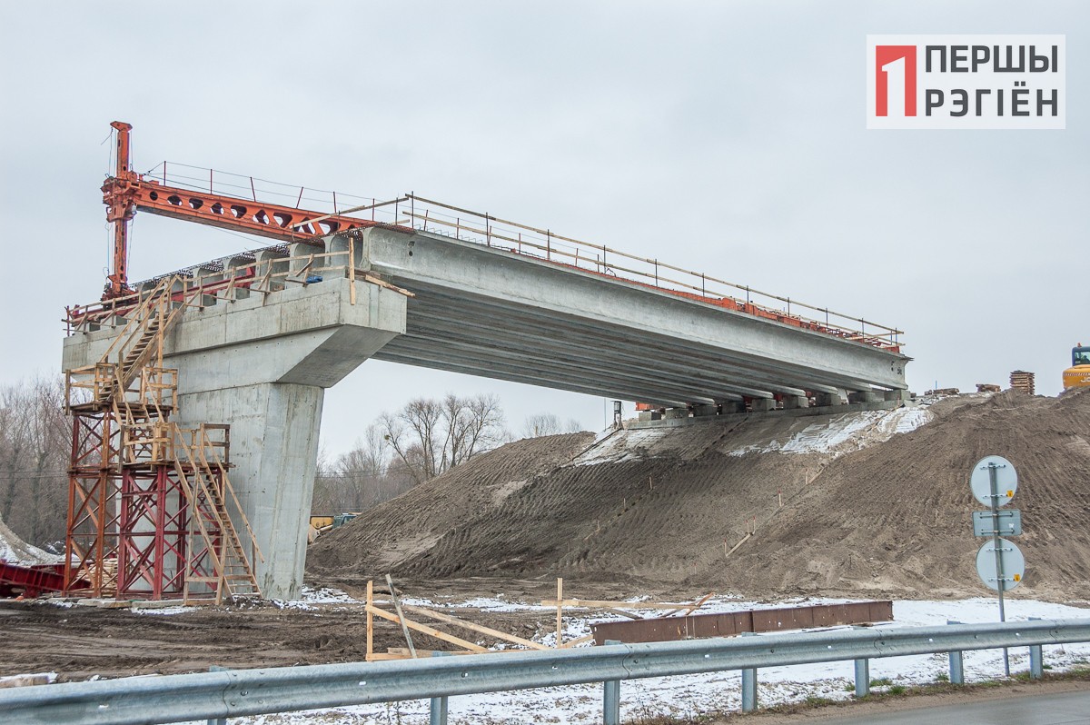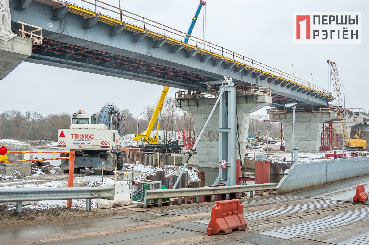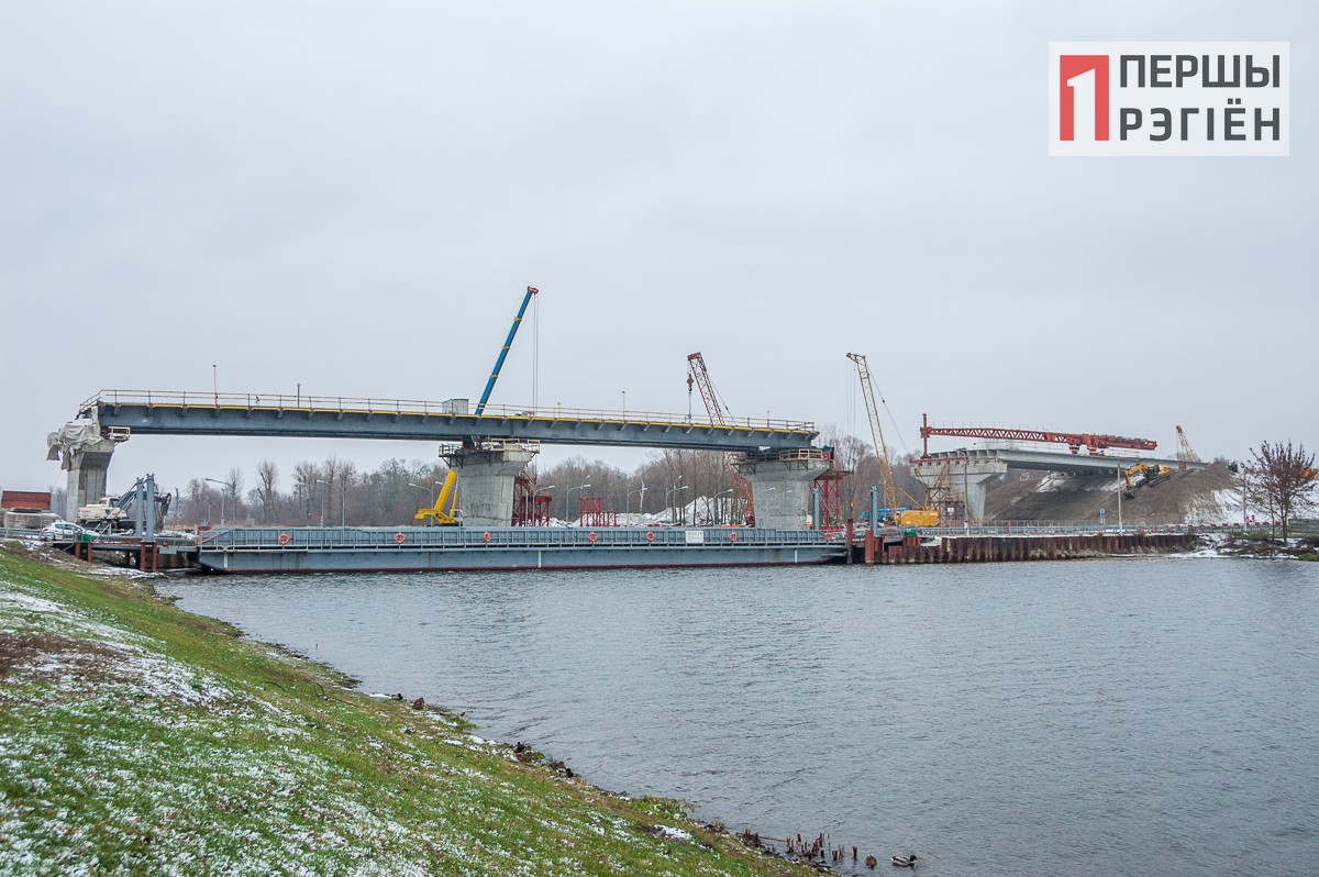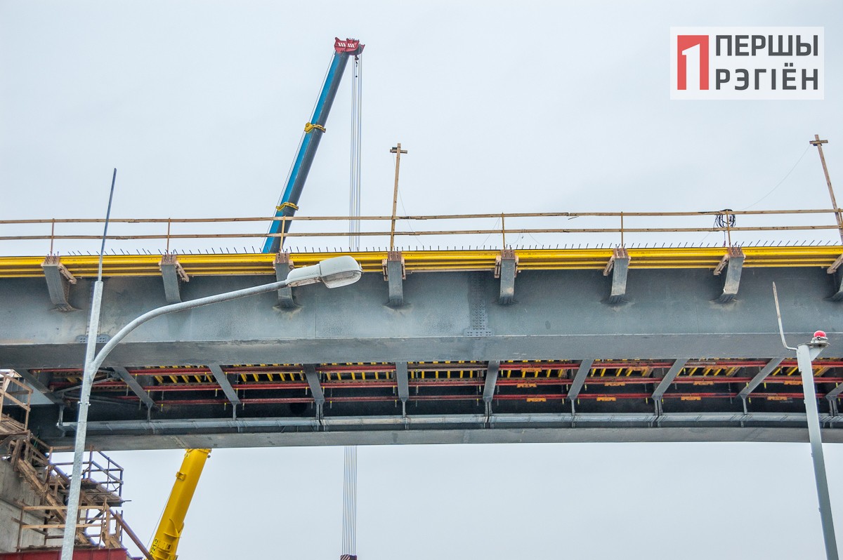 В эти дни уже видно, что основная часть строительства идет по плану и приближается к заключительной стадии. Как и обещали строители, пролеты над рекой будут перекрыты металлической конструкцией: она уже установлена на опорах. А над пролетами над землей будут сооружены конструкции из железобетона. Сейчас их можно видеть в самом начале и в самом конце теперь уже нового моста.
