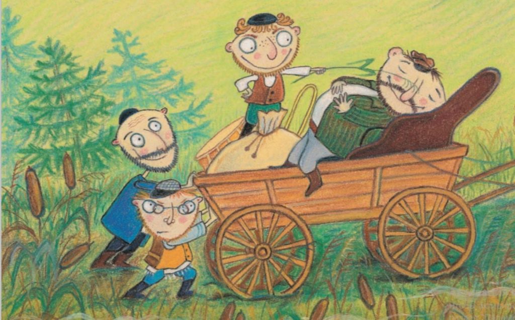 Они путешествовали вверх и вниз по холмам через небольшие деревни и реки. Фея, лошадь Йиске много трудилась и уставала, чтобы протащить повозку через полесские болота. Каждый раз, когда повозка застревала в болотах, вся группа выпрыгивала из неё и подталкивала повозку руками.