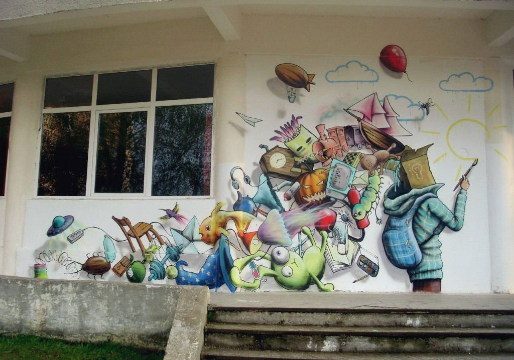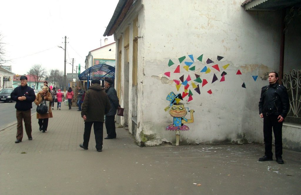 — Сначала занимался нелегально. Даже был случай – поймала милиция. Потом появились контакты с отделом культуры (Пинского горисполкома – ред.) и мне разрешили расписать стену возле Детской поликлиники в Пинске, — рассказывает Евгений.
