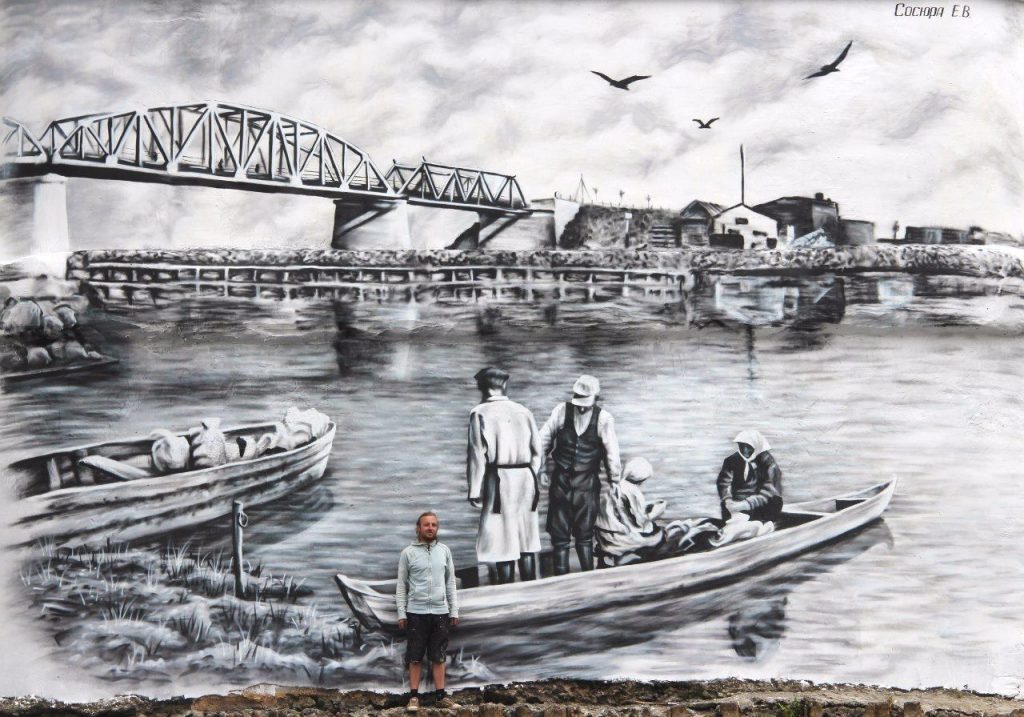 Эту работу Евгений делал долго, с помощником. А потом получил еще один заказ на оформление опор, теперь уже бывших, моста через Пину, который связывает столицу Полесья со Столинским районом.