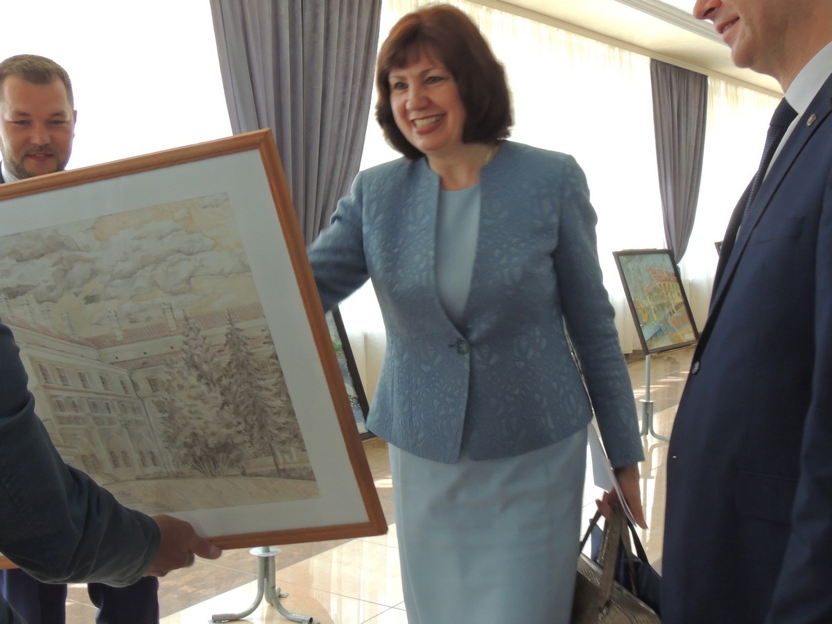 После беседы с горожанами, Кочанова познакомилась с работами учеников Пинской школы изобразительного искусства, выставленных в фойе ГДК. Высказалась по поводу высокого уровня мастерства юных художников. В заключении, гостье подарили картину пятнадцатилетней ученицы Полины Северин.