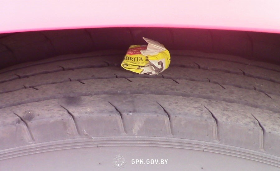 Выходя из транспорта, мужчина решил избавиться от незаконного «груза», сбросив его на заднее колесо автобуса. Однако незаметно это сделать не удалось.