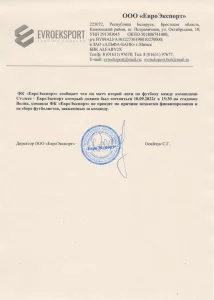 Лишь в четверг, 8 сентября, «Евроэкспорт» уведомил, что не приедет в Пинск. Причина — нехватка финансирования и не сбор футболистов, заявленных за команду. Удивительный фактор от команды, которая попала в тройку лучших на первом этапе соревнований.