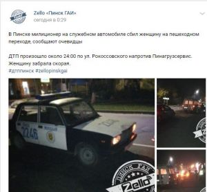 В Пинске милиционер на служебном автомобиле сбил женщину на пешеходном переходе, сообщают очевидцы